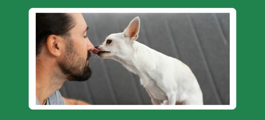 Le léchage des lèvres ou du museau d’un autre chien est fréquemment observé dans des situations de tension, d’hésitation, de menace, de compétition. Il est un acte de soumission ponctuel dans un contexte déterminé pour une motivation valable uniquement à l’instant T. Avec l’humain, le léchage est plus fréquent lors d’interactions perçues comme conflictuelles ou stressantes que dans les contextes d’affection pure. Par exemple, les chiens se lèchent davantage les lèvres face à des expressions faciales humaines négatives ou lors de situations ambiguës, ce qui suggère une fonction de gestion du stress ou une volonté de communication pacifique. Le léchage peut survenir lorsque le chien se sent observé, quand on parle de lui en sa présence, quand quelqu’un se penche sur lui ou lorsqu’une interaction est non souhaitée, ou intense. Ici, le chien exprime son stress de proximité, une demande pacifique d’éloignement social, ou simplement d’arrêt.